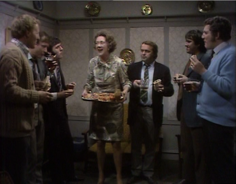 Tony gets a phone call from an old pal asking him to come down the club for a drink. Jean is not thrilled but Tony goes anyway. Later, he and the boys all pile in and the reason for a barrel of beer we saw Mrs Weston hiding earlier becomes apparent. It’s clear she planned this all along. She’s delighted to start making sandwiches for them all, talking about the fantastic old times they used to have with her boys, who loved visiting. We start to get a sense of time for the party, as the lounge becomes increasingly filled with smoke from their cigarettes.