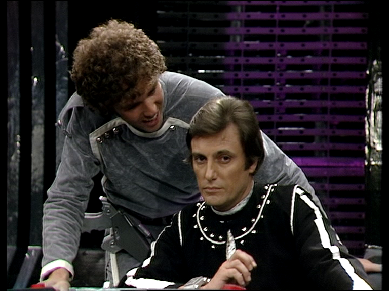Other than this, I did like much of Proudfoot’s direction. The tight two-shot of Servalan and Verlis is ideal for their gossipy chat on the beach while the slow fades between shots of Avon, Soolin and Tarrant prowling the ship help add to the atmosphere as they hunt for Cancer.