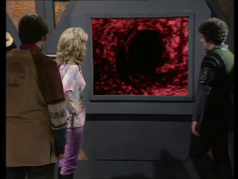 One additional point to mention after this episode is that the series continues to push the limits of its special effects capabilities. This week the vortex is represented only on a screen, with red moving swirls reminiscent of Jon Pertwee’s Doctor Who titles. They employ camera effects to stretch and alter the onscreen images, as well as relying on good old shaky camera acting.