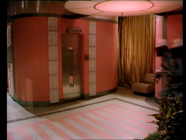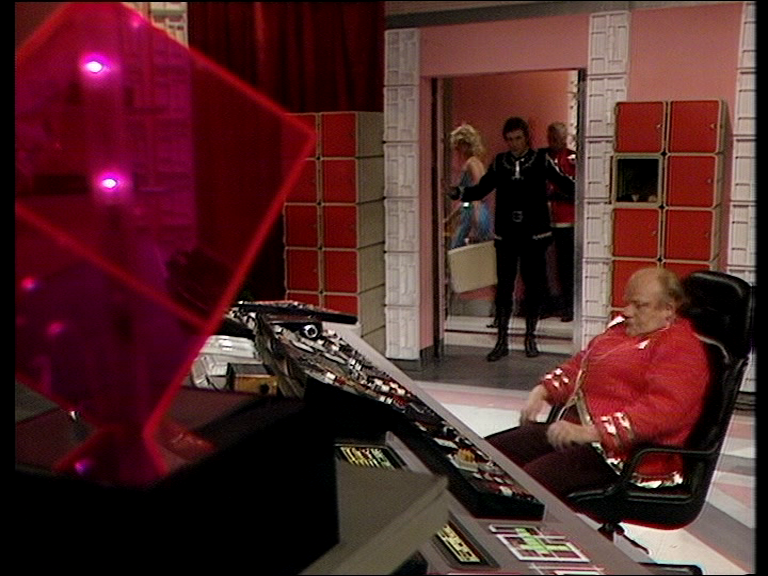 There is a lot to like about the way the Princess ship is used. I like that we are introduced to its pastel pink interior early on before returning to it later, with soft music now added, having got a glimpse of all the onboard locations we’ll see again. I like that Keillor’s red jacket and his tannoy commentary made me think of Butlins’ redcoats. I like that the darkly-coloured vault is almost an inverse to the rest of the ship. Overall, I adore the contrast between the Princess’s lovely calming aspects and the tense heist. Earlier in the series, I had become fed up of seeing lots of bland and grey sets, so the Princess’s design makes a big difference. It’s marvellously ghastly.
