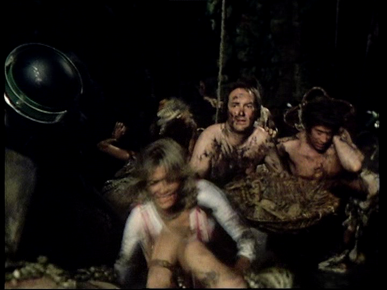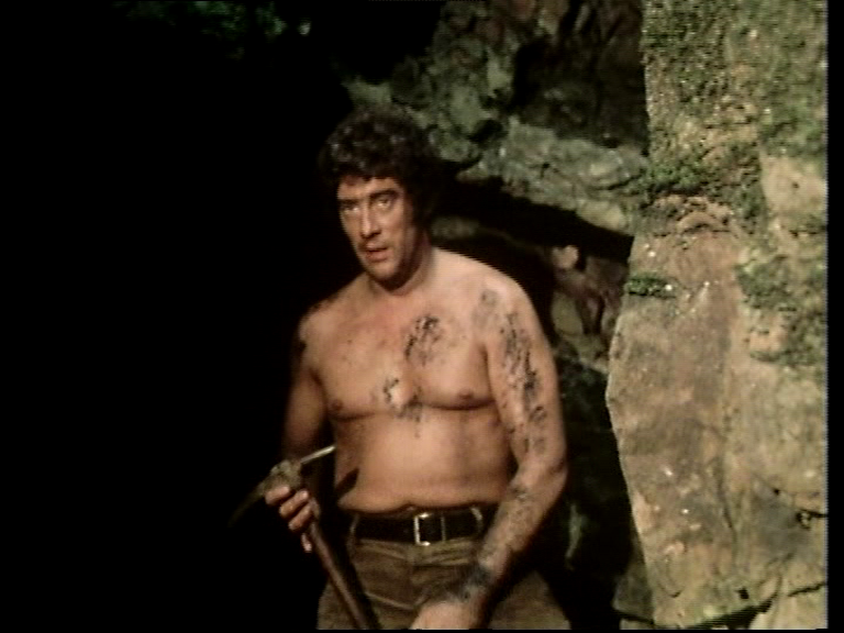 As if this wasn’t enough, we progress to shirts being completely removed for Blake and Vila when they are working in the mine. I’m not too sure how common such sights were on television by 1979. Over in Back in Time For TV, I’d seen the progression from the 1960s when married couples were depicted in bed together wearing full pyjamas and dressing gowns, yet by the mid-1970s a man could sit at a breakfast table with only a towel around his waist. Context is part of this – there is a difference between seeing couples in bed and someone getting undressed in a doctor’s office for instance. That period’s television still always seems far more prudish than most of real life.