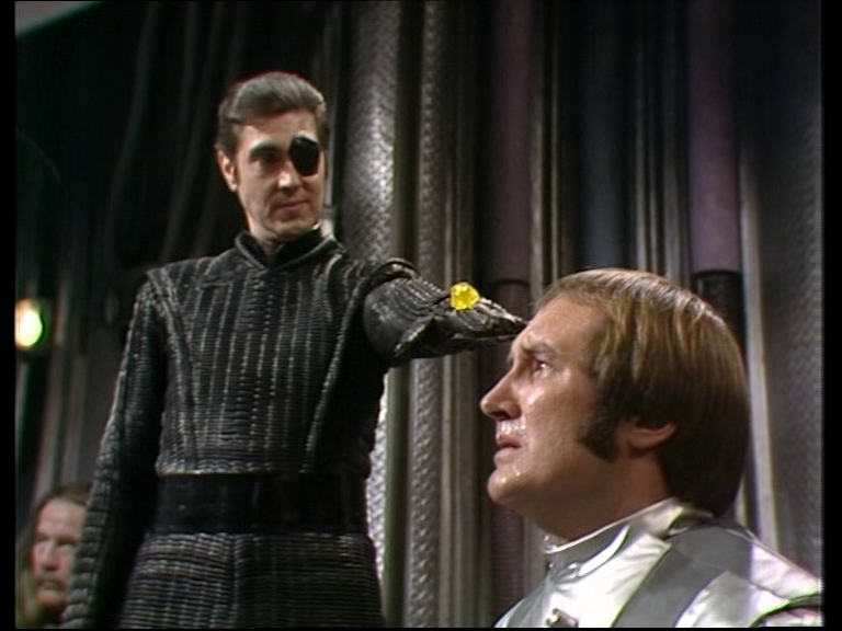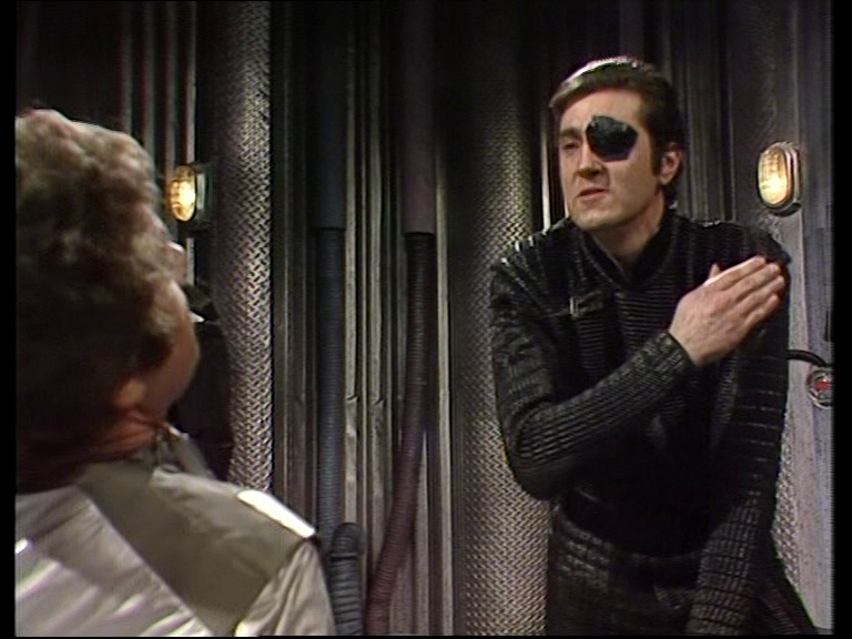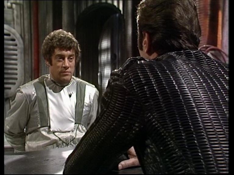 Servalan remains the only female character to be given anything substantial. She gets a lovely scene with Kevin Stoney as a counsellor, who seems like an old friend of the Supreme Commander, though I must admit that I spent a lot of that scene just enjoying Kevin Stoney’s voice. We then see her on a pursuit ship with mutoids. While the previous ones have all looked identical as young women with dark hair, these two are older, more middle-aged, with short blonde locks. I’ve imagined the mutoids as being made uniform during their creation so was curious to see a variation.