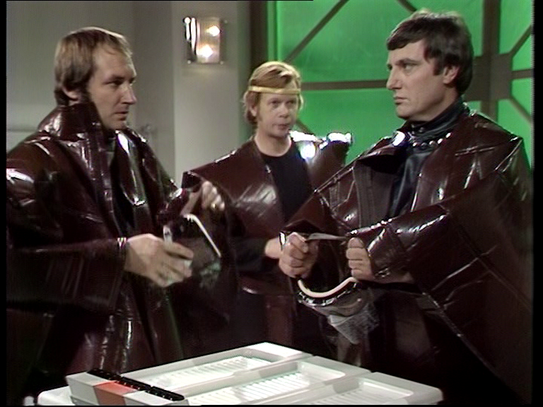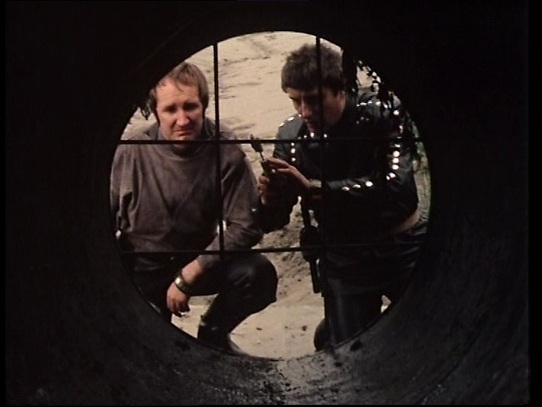 I have to mention the ponchos. These plastic brown cloaks are one of the worst pieces of design in the series so far. To blend in, Avon and Vila don them too so they are on screen a lot. Aesthetics aside, my biggest bugbear is that their shininess causes frequent reflections and flare-ups on the screen. You can’t just stick anything in front of a television video camera. Sensible people will avoid moving flames because these also cause flares. In the case of these cloaks, every time a character moves and catches the light in the wrong way, we get a flare. The scientists wear similar ones in white, which while not ideal, appear with far less movement so don’t have as much an impact. These flares did become annoying because they were distracting when everything going on around it was so good.