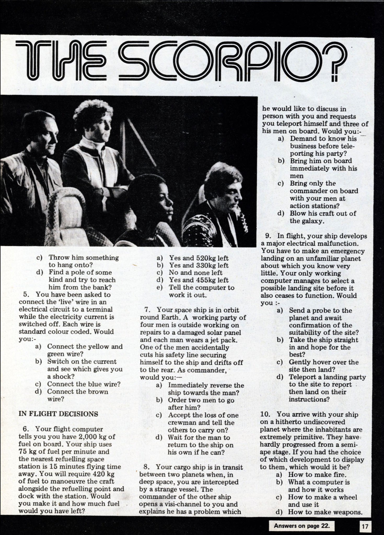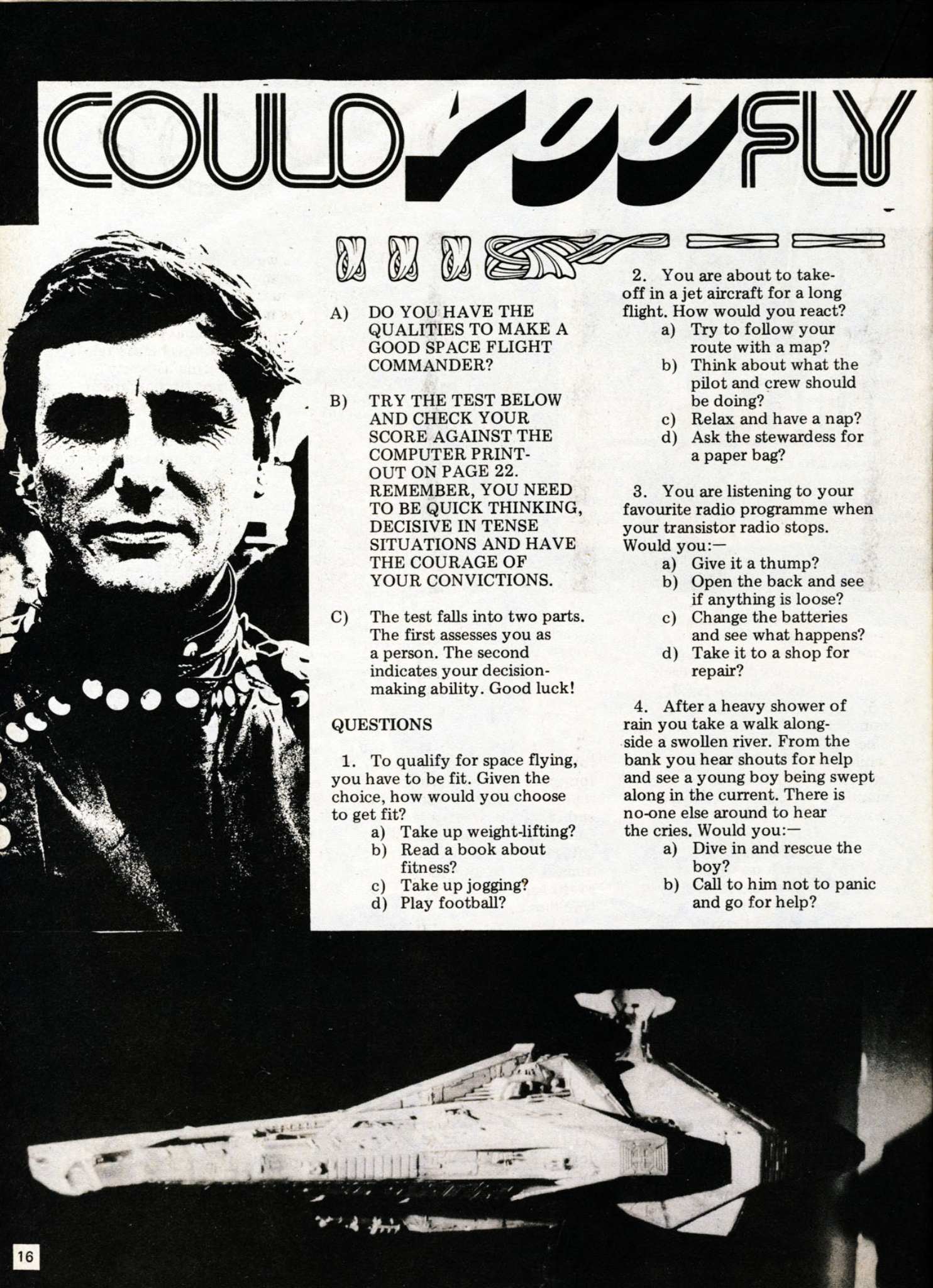 There is no Story Puzzle this month but instead we get a quiz that asks: ‘DO YOU HAVE THE QUALITIES TO MAKE A GOOD SPACE FLIGHT COMMANDER?’ It turns out I don’t because I prefer weight lifting to jogging, don’t know how to wire a plug and struggle with mental maths – I still can’t figure out where I went wrong with question 7. The best answers weren’t obvious so I enjoyed thinking about them and this was one of my favourite features this month, even if I am destined to wash Star Fleet’s dishes.