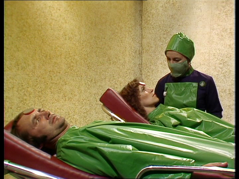 Servalan’s gleeful reveal of the facility’s purpose is so perfectly in character for her. The revelation that they were at an organ harvesting facility turned my stomach as nastily as it did Vila’s face. Instantly, images flashed across my mind’s eye of an episode of Waking the Dead (2000-2011) – the only one I’ve ever seen – in which a man had volunteered to sell one of his kidneys, but had then had his eyes stolen as well. That was the first time I became aware of the practice and I’ve continued to find it horrifying.
