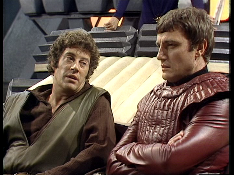 On the other end of the scale, Vila’s costume has been altered for the worst this week. While the budget has undoubtedly increased this series, there comes a time when economies are needed so Vila’s grey outfit has been brightened up this week with the addition of a white belt and yellow bits of plastic. He’s gained some large cuffs and a half-cape-half-waistcoat thing. Unfortunately the episode’s direction meant we were several scenes in before I was able to work out what the cape-waistcoat thing actually was. The first few scenes only featured Michael Keating from the waist up so we couldn’t see this new addition properly. Once we can, it remains unimpressive and seems utterly pointless.