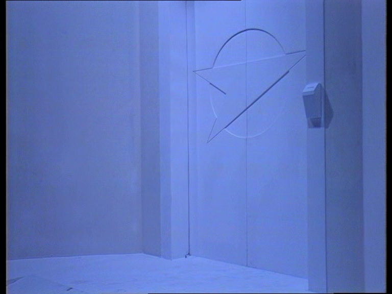 The episode’s design winner for me was the doors inside Control. Bathed in blue light, the sliding double doors are etched with the Federation’s symbol. I love this symbol as I find it such a nice piece of design. I enjoy spotting it used throughout Blake’s 7 and usually the subtler the better, but on this occasion, you know what – go for it and stick a great big symbol on a set of doors. More please.