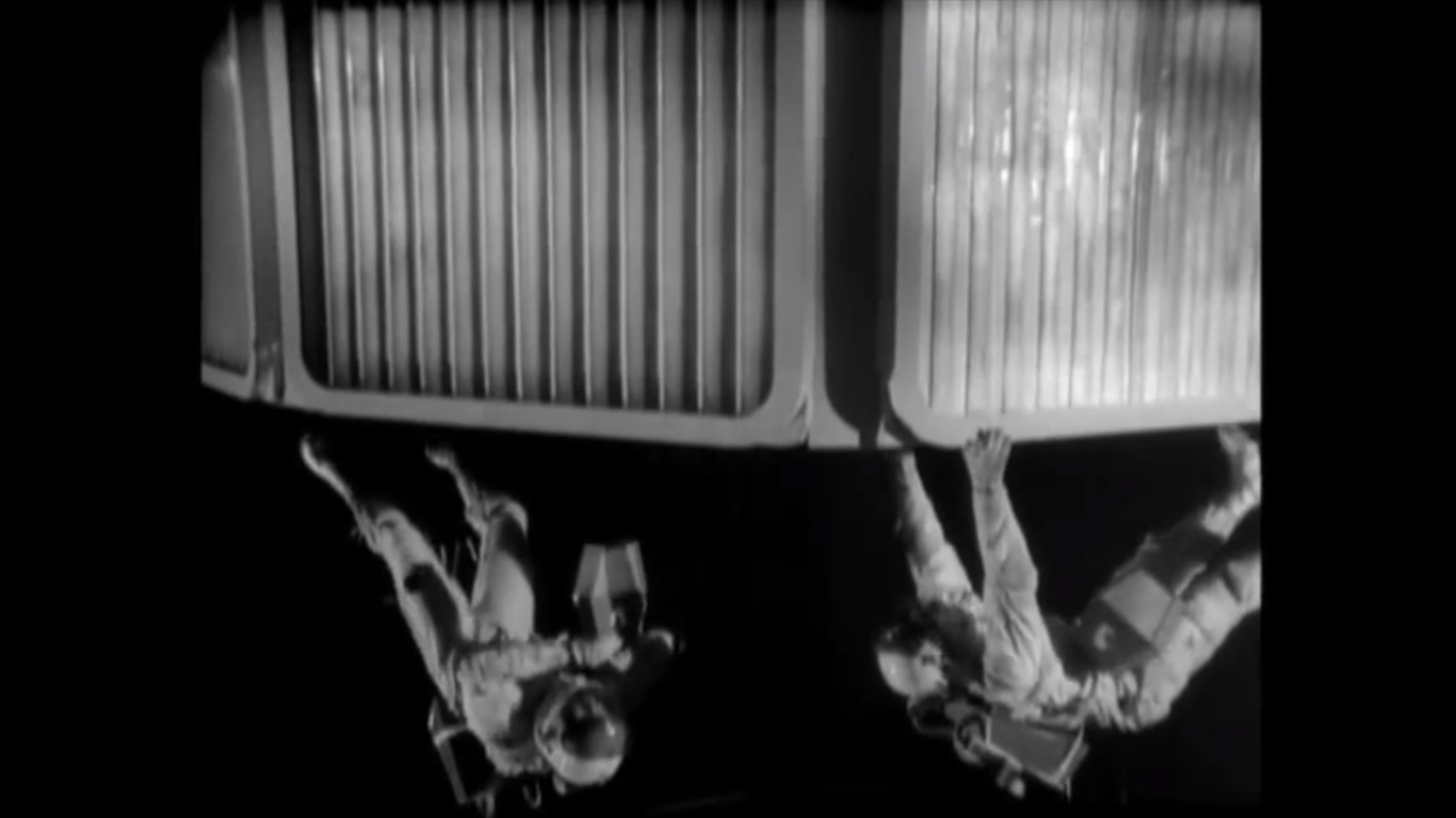 It isn’t terrible. I can say that at least. It is not a terrible episode. However the majority of it is rather dull. It takes fifteen minutes – FIFTEEN MINUTES – for the Doctor, Jamie and Zoe to show up. These fifteen minutes stretch. The Space Pirates is a great title for a story. It sounds thrilling and exciting. You imagine the 26th century version of Captain Hook perhaps, mowing down Space Corps personnel with a blaster gun or swiping at them with a laser sword, his neon eye patch secretly scanning for valuable cargo. This is not what we are given. Instead it’s a couple of blokes in dodgy headgear blowing up satellites in order to steal the ‘argonite’ they are built from. The reconstruction I watched has a lot of scenes with spaceships moving slowly in space and men in spacesuits floating as they mess with the satellites. There is also a lot of time at a Space Corps’ ship’s bridge where the crew watch blobs on screens and the captain makes the odd announcement over his PA system.