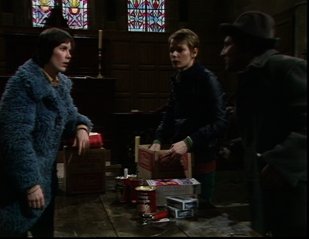 I had clocked Robert Gillespie among Wormley’s gang at the supermarket. I don’t think he said a single word in those scenes and that seemed odd because I know he’d had plenty of television acting experience by this time. Therefore his appearance made more sense later on when Abby and co. find him outside the church, warning them to hide. I was unsure if this was a trick and was on edge waiting for him to reveal their hiding spot to the other two. But no, it appears he’s genuinely helping them out, which is intriguing. Maybe he realised he was safest standing with rather than against Wormley. It’s nice to know that one half-decent person has infiltrated there. It also makes me think back to the events on the supermarket carpark – perhaps he let Jenny take his gun on purpose, or at least was lax about ensuring her or Greg had the opportunity?
