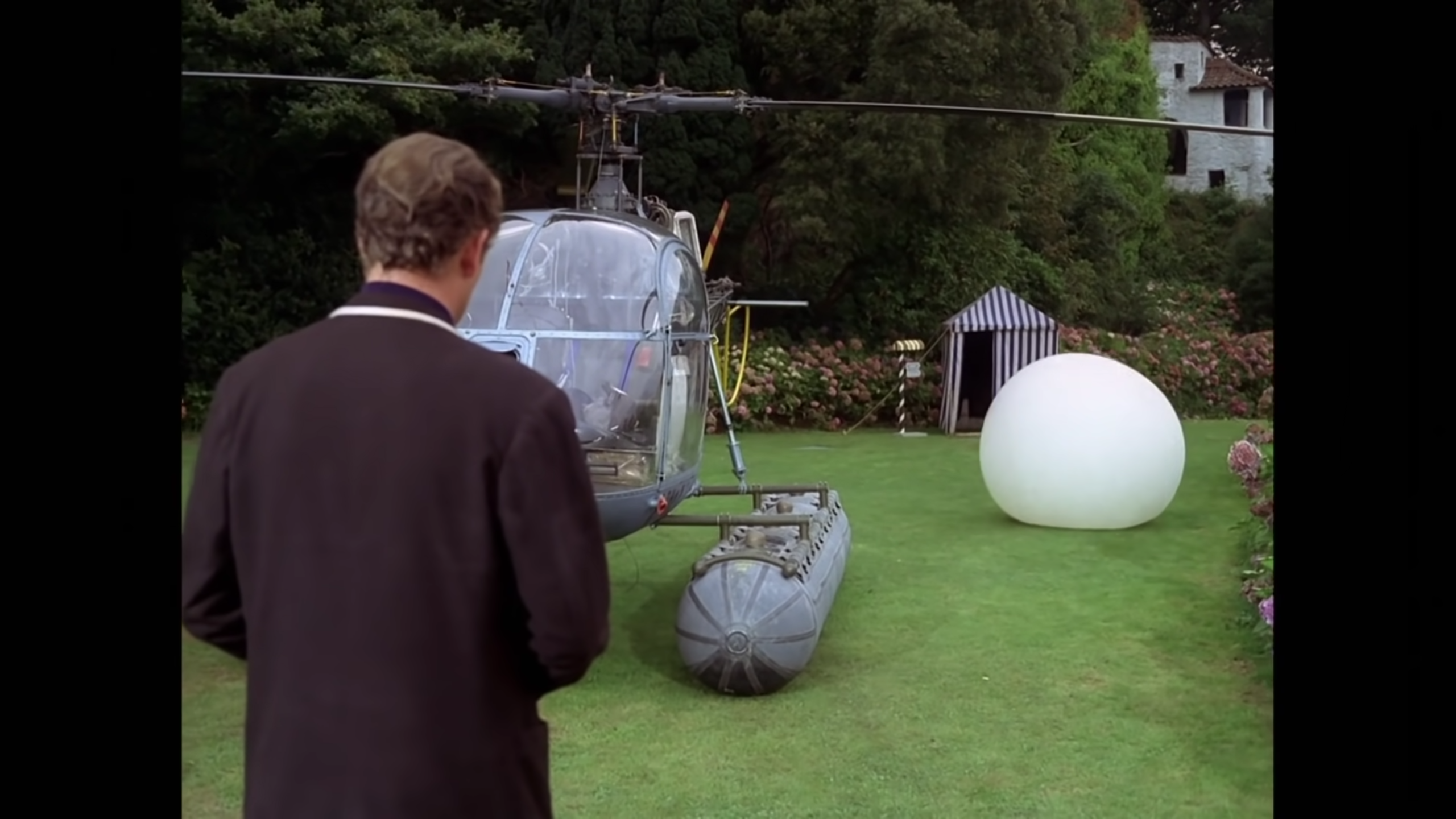 We find out in this episode that there are no safe places in the Village because you are always being watched. When the radio repairman (Oliver MacGreevy) arrives Number Six remarks that he fancies a walk and the front door automatically opens. As he walk through woodland there are statues and busts and we see that their eyes follow him. If the prisoners still have not caught on then there is Rover, a large white balloon. Personally I find Rover quite a frightening aspect of the Village. Upon Rover’s first appearance on the village green the music stops and everyone freezes. Everything is still and there is complete silence Number Six looks round to see what is happening. A man panics and screams. He begins to run but Rover quickly catches up with him. It presses down on him and we see his distorted screaming features through the white rubber. The balloon envelopes him and he disappears, presumably inside it, before Rover bounds away. The music picks up where it left off and everyone continues as before, completely normally, as though nothing had happened. Rover cannot be defeated. It cannot be outrun. This, coupled with the face pushed against the rubber, looking as though the person is being suffocated, is what makes Rover rather disturbing for me. When it comes for Number Six later, he tries to shove it away, punch it even, but to no avail. It gets the better of him and he is dragged away.