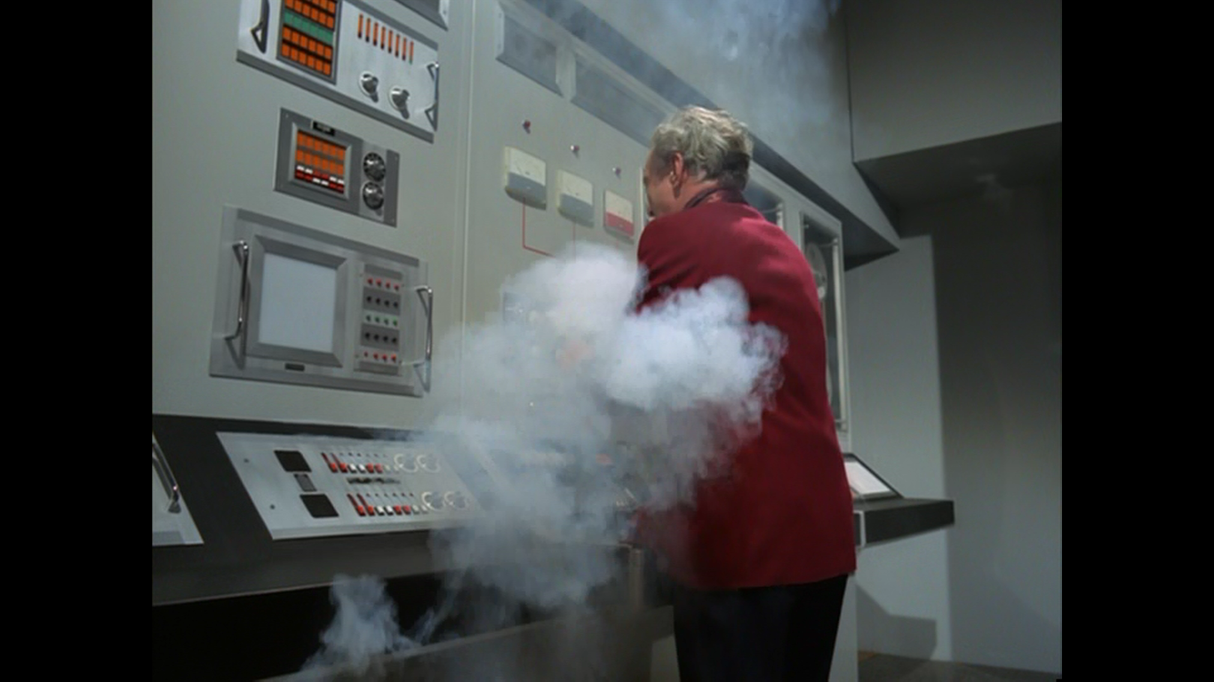 Number Six says “There is a question that the General cannot answer.” “Impossible.” Number Two replies. “Allow me to ask it.” “No.” “You afraid?” “…Go ahead.” So Number Six types out the question and puts the paper in the machine. The metal strip comes out and the Professor takes it over to the General. A dial swings to ‘DANGER’, smoke starts appearing and then there are explosions. Number 12 goes over to help the Professor but they both end up dead on the floor. “What was the question?” Number Two demands. “It’s insoluble of man or machine.” Number Six answers. “What was it?” “W. H. Y. Question mark.” “Why?” “Why.”