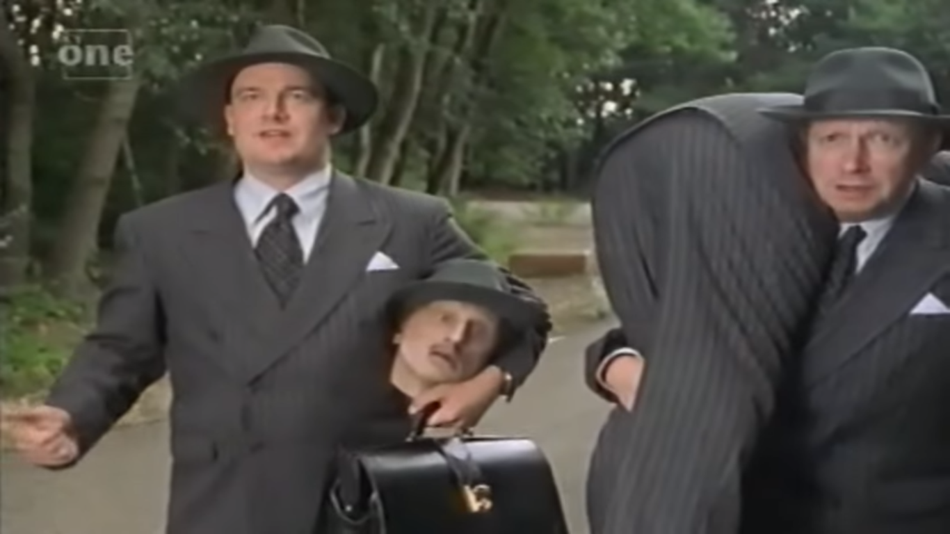 There is great physical comedy attempted with the Supervisor, starting from the moment he is knocked down dead while attempting to thumb a lift from a truck. It’s sudden and the shock should make you laugh, but it’s built up for too long – we cut to the tired, distracted driver too much and I found the situation predictable. Somehow, being knocked down has decapitated the Supervisor, so his two cadets now must carry his head and body around, planning to put him back together again as soon as they can. As we know that sticking the Supervisor’s head on won’t help the fact that he’s obviously very dead, it does begin to seem as though the cadets will be carrying him around for the entire series. I hope for more interesting situations for disguising the corpse.