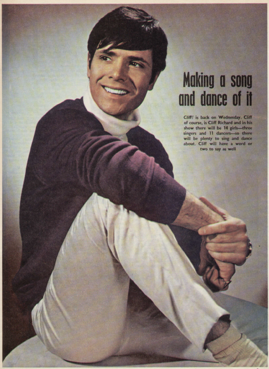 Cliff Richard gets a full page colour photo to tell us his series, Cliff!, is back on Wednesday. We are told little about it with TV Times seeing fit only to give us the most vital information: ‘there will be 14 girls – three singers and 11 dancers‘.
