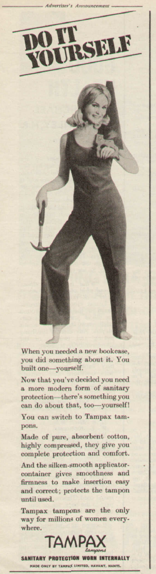 The crux of this advert seems to be that if you can put up a bookcase then you can insert a tampon. What baffles me is it seems to imply someone else was doing both of these things before.